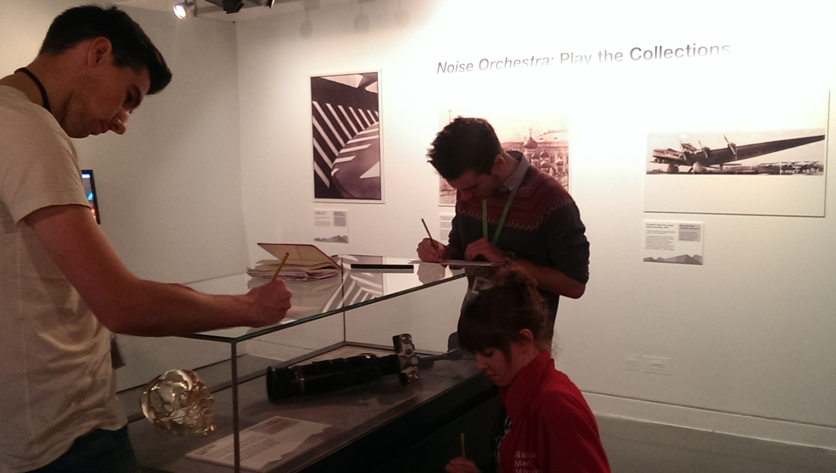 Today we also trained the Explainers at the museum who will be leading drop in workshops for families and schools. Here they are drawing from the objects to create their own visual scores.