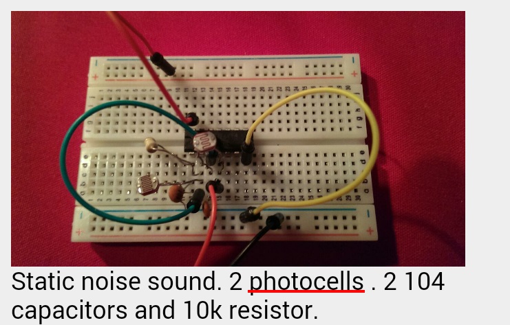 On our first studio day we experimented with the Hex Schmitt Trigger circuit. All together we built five separate circuits through varying the capacitors, resistors and adding additional oscillators. We started our project log where we will note down each circuit we build and the sound/effect this produces, our soundcloud will be a space to document our findings and will be important as we build the orchestra. A highlight of the day was playing with the 10p outputs from crocodile clips, this meant that a human (or in the case of the video below… a toy bust of Lenin) holding both the coins completed the circuit and generated the sound. By rubbing your fingers and moving them around this also altered the sound of the oscillator. Children and families loved having a play with this, holding hands or touching noses to complete the circuit… scientific fun!