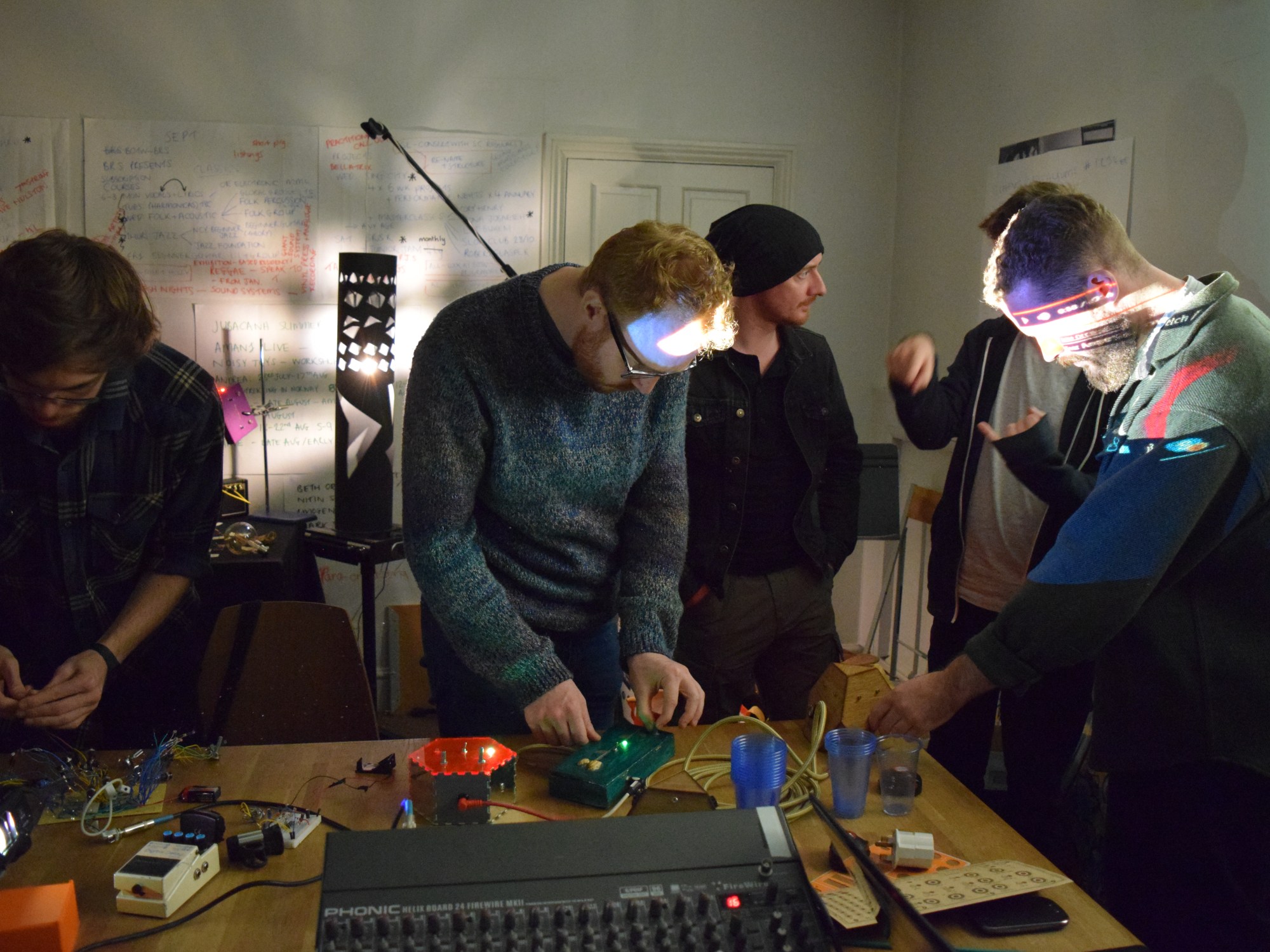It was an incredible session; we are so pleased with the response as the group started playing together collectively really quickly, producing interesting rhythms, patterns and improvisations. Thanks to all who came down, we have some excellent feedback and starting points for circuit development. Some interesting insights into the ways the machines could be used with their own live set up, how we can increase the complexity of the waveforms and chaos and think about external signals into the machines.