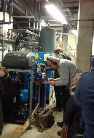 Work for creating Journey through the Mirror Pool began with a two day recording session led by sound recordist Chris Watson and with Alan Dunn and students from Leeds Beckett University recording sounds around Bradford using contact mics, hydrophones, bat detectors, electromagnetic frequency detectors and other recording equipment. The aim was to unveil hidden sounds that are normally inaudible, or usually undetectable to the everyday ear without specialist listening or recording equipment.