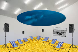 Audiences sit on deckchairs in a collective and focused listening experience in an especially built sound space; the aim being to encourage listeners to hear unfamiliar sounds and consider sound and how we listen in a different way. The listening experience was designed as a coming together and has something of a ritualistic feel enhanced by the lighting and cocooned environment.